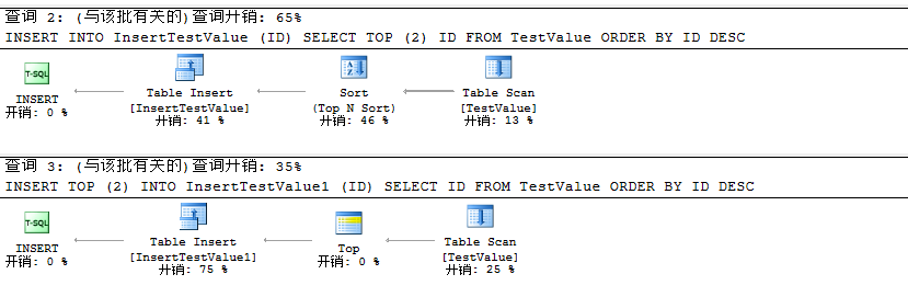 到这里我们能够知道利用INSET TOP (N)比INSERT … SELECT TOP (N)性能更好,同时SELECT TOP(N)会对查询出的数据排序进行忽略。至此我们可以得出如下结论