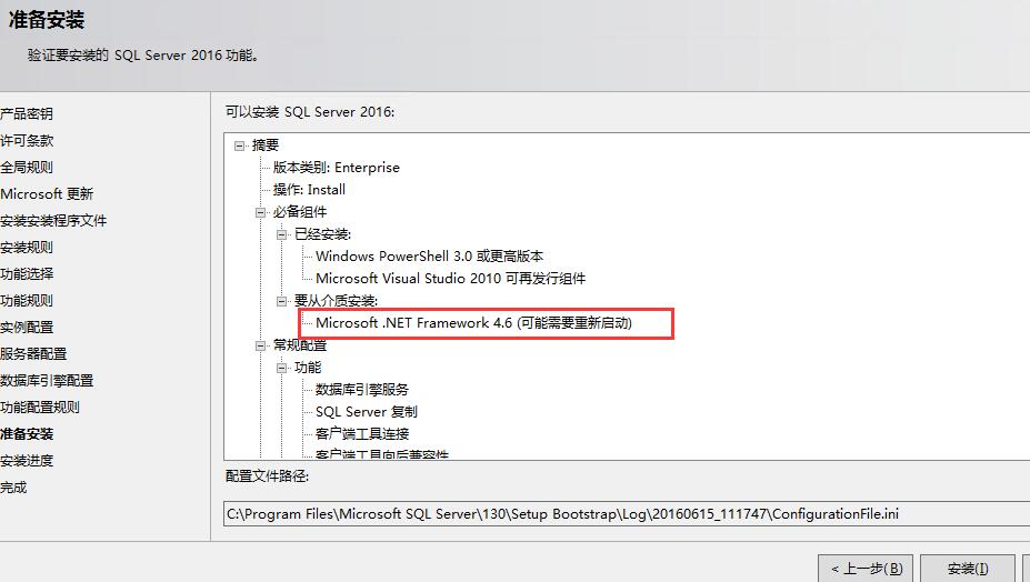 开始安装,SQL Server2016需要最新的.NET4.6