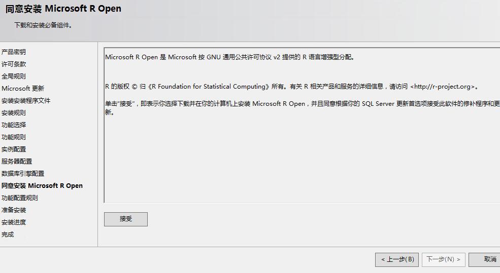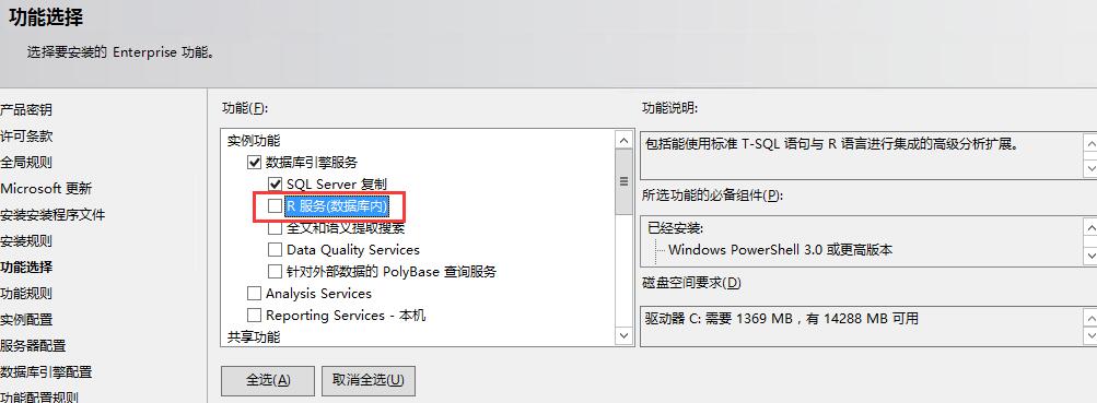 功能选择里多出来的R Server,但是R Server需要联网或者自己下载下来,这是坑爹的地方之一,它没有集成在SQL Server2016安装包里