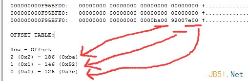 有没有看到上面(0,1,2)三个槽位,并且都有相应的偏移地址(0x7e,0x92,0xba),这个地址就指向了Data区域实际记录的偏移地址。