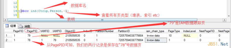 刚才也说了,数据页有很多种,默认说的都是表数据页,其实还有IAM数据页,没什么稀奇的,IAM就是用来跟踪表数据页的,所以上面的图中,IAMFID字段为Null的记录就是IAM页,下面的PagePID=78的,就是表数据页。