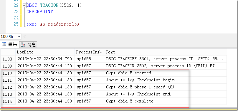 图1.在错误日志中显示Checkpoint