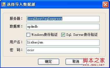 在上图所示窗口中,将“服务器”处改为英文输入法下的点“.”,“数据库”后填写“epdm003”,“用户名”和“密码”后填写当时安装SQLServer2005时自己设置的用户名和密码,然后点“确定”。如下图所示: