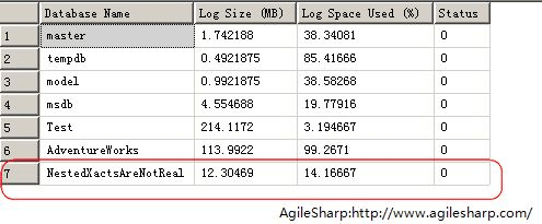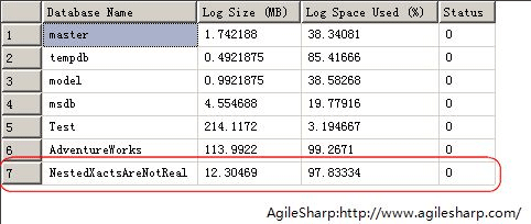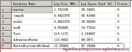 但是,嵌套事务并不是真正的“嵌套”,对于嵌套事务来说SQL Server仅仅能够识别外层的事务。嵌套事务是日志不正常增长的罪魁祸首之一因为开发人员以为回滚了内层事务,仅仅是回滚内层事务。