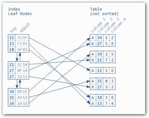当然,索引比字典目录更为复杂,因为数据库必须处理插入,删除和更新等操作,这些操作将导致索引发生变化。