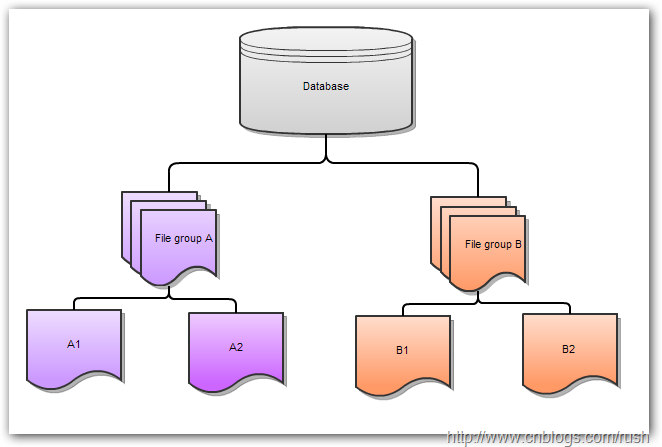 在顶层是我们的数据库,由于数据库是由一个或多个文件组组成,而文件组是由一个或多个文件组成的逻辑组,所以我们可以把文件组分散到不同的磁盘中,使用户数据尽可能跨越多个设备,多个I/O 运转,避免 I/O 竞争,从而均衡I/O负载,克服访问瓶颈。