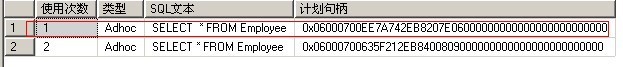 3.1 先执行删除所有执行计划,然后执行SELECT * FROM Employee ,最后查看执行计划(2.1中的查看执行计划脚本)如下图