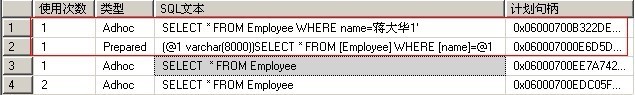 即当执行一个未参数化SQL时,SQL SERVER需要先将其转换成一个参数SQL并执行它。一共需要两执行计划