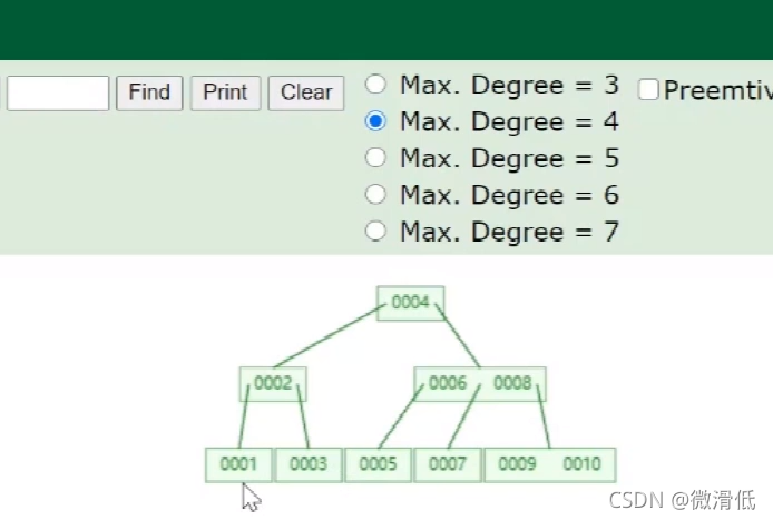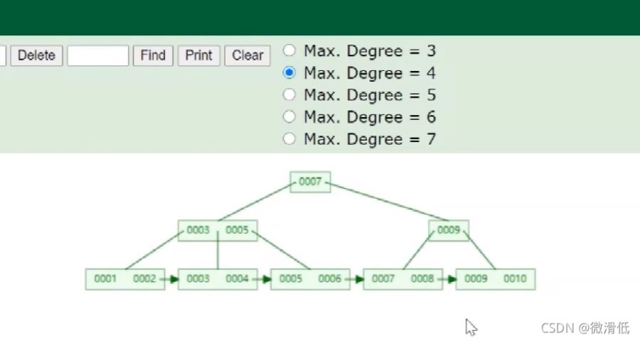 Degree为4表示的是一个节点存储三个数据值,超过就要变换。那么实际的数据是怎么存储的呢?我们需要Key和完整的数据行