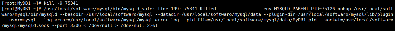 [root@MyDB1 ~]# kill -9 75341 #直接杀死进程