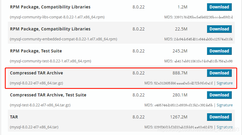 [root@MyDB1 software]# md5sum mysql-8.0.22-el7-x86_64.tar.gz