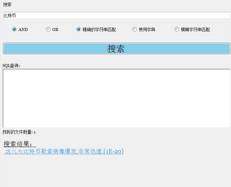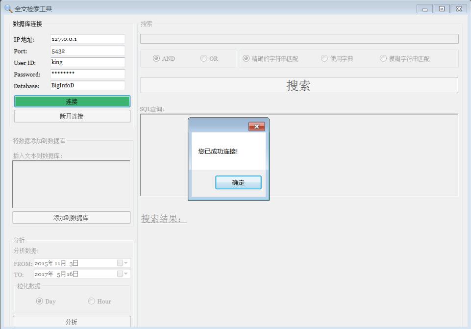 using System; using System.Collections.Generic; using System.Data; using System.Drawing; using System.Windows.Forms; using FullTextSearch.Common; using Npgsql; namespace FullTextSearch { public partial class MainManager : Form { private readonly PostgreSQL pg = new PostgreSQL(); private readonly SQLquerys sqlQuerys = new SQLquerys(); private char analysisType; private string createConnString = ""; private DataSet dataSet = new DataSet(); private DataTable dataTable = new DataTable(); private char odabirAndOr; private char vrstaPretrazivanja; public MainManager() { InitializeComponent(); rbtn_AND.Checked = true; rbtnNeizmjenjeni.Checked = true; odabirAndOr = '*'; radioButton_Day.Checked = true; radioButton_Day.Checked = true; } private void Form1_Load(object sender, EventArgs e) { gb_unosPodataka.Enabled = false; groupBox_Search.Enabled = false; groupBox_Analysis.Enabled = false; button_Disconnect.Enabled = false; button_Pretrazi.BackColor = Color.WhiteSmoke; button_Disconnect.BackColor = Color.WhiteSmoke; button_unosTekstaUBazu.BackColor = Color.WhiteSmoke; button1.BackColor = Color.WhiteSmoke; } private void button_unosTekstaUBazu_Click(object sender, EventArgs e) { string searchTextBoxString = rTB_unosTextaUBazu.Text; if (searchTextBoxString != "") { pg.insertIntoTable(searchTextBoxString, pg.conn); MessageBox.Show(searchTextBoxString + " 添加到数据库!"); rTB_unosTextaUBazu.Clear(); } else { MessageBox.Show("不允许空数据!"); } } private void button_Pretrazi_Click(object sender, EventArgs e) { string stringToSearch; string sql; string highlitedText; string rank; string check; stringToSearch = txt_Search.Text.Trim(); var list = new Liststring>(ChineseParse.ParseChinese(stringToSearch)); ; sql = sqlQuerys.createSqlString(list, odabirAndOr, vrstaPretrazivanja); richTextBox1.Text = sql; check = sqlQuerys.testIfEmpty(stringToSearch); pg.insertIntoAnalysisTable(stringToSearch, pg.conn); pg.openConnection(); var command = new NpgsqlCommand(sql, pg.conn); NpgsqlDataReader reader = command.ExecuteReader(); int count = 0; linkLabel_Rezultat.Text = " "; while (reader.Read()) { highlitedText = reader[1].ToString(); rank = reader[3].ToString(); linkLabel_Rezultat.Text += highlitedText + "[" + rank + "]\n"; count++; } labelBrojac.Text = "找到的文件数量: " + count; pg.closeConnection(); } private void rbtn_AND_CheckedChanged(object sender, EventArgs e) { odabirAndOr = '*'; } private void rbtn_OR_CheckedChanged(object sender, EventArgs e) { odabirAndOr = '+'; } private void rbtnNeizmjenjeni_CheckedChanged(object sender, EventArgs e) { vrstaPretrazivanja = 'A'; } private void rbtn_Rijecnici_CheckedChanged(object sender, EventArgs e) { vrstaPretrazivanja = 'B'; } private void rbtn_Fuzzy_CheckedChanged(object sender, EventArgs e) { vrstaPretrazivanja = 'C'; } private void button_Connect_Click(object sender, EventArgs e) { if (connectMe()) { gb_unosPodataka.Enabled = true; groupBox_Search.Enabled = true; groupBox_Analysis.Enabled = true; textBox_Database.Enabled = false; textBox_IP.Enabled = false; textBox_Port.Enabled = false; textBox_Password.Enabled = false; textBox_UserID.Enabled = false; button_Connect.Enabled = false; button_Disconnect.Enabled = true; button_Pretrazi.BackColor = Color.SkyBlue; button_Disconnect.BackColor = Color.IndianRed; button_unosTekstaUBazu.BackColor = Color.MediumSeaGreen; button1.BackColor = Color.MediumSeaGreen; button_Connect.BackColor = Color.WhiteSmoke; } } private void button_Disconnect_Click(object sender, EventArgs e) { gb_unosPodataka.Enabled = false; groupBox_Search.Enabled = false; groupBox_Analysis.Enabled = false; textBox_Database.Enabled = true; textBox_IP.Enabled = true; textBox_Port.Enabled = true; textBox_Password.Enabled = true; textBox_UserID.Enabled = true; button_Connect.Enabled = true; button_Disconnect.Enabled = false; button_Pretrazi.BackColor = Color.WhiteSmoke; button_Disconnect.BackColor = Color.WhiteSmoke; button_unosTekstaUBazu.BackColor = Color.WhiteSmoke; button1.BackColor = Color.WhiteSmoke; button_Connect.BackColor = Color.MediumSeaGreen; txt_Search.Text = ""; linkLabel_Rezultat.Text = ""; richTextBox1.Text = ""; labelBrojac.Text = ""; } private bool connectMe() { createConnString += "Server=" + textBox_IP.Text + ";Port=" + textBox_Port.Text + ";User Id=" + textBox_UserID.Text + ";Password=" + textBox_Password.Text + ";Database=" + textBox_Database.Text + ";"; sqlQuerys.setTheKey(createConnString); pg.setConnectionString(); pg.setConnection(); if (pg.openConnection()) { MessageBox.Show("您已成功连接!"); pg.closeConnection(); return true; } return false; } private void button1_Click(object sender, EventArgs e) { string selectedTimest selectedTimestamp = dateTimePicker_From.Value.ToString("dd-MM-yyyy hh:mm:ss") + " " + dateTimePicker_To.Value.ToString("dd-MM-yyyy hh:mm:ss"); var analize = new Analysis(selectedTimestamp, analysisType); analize.Show(); } private void radioButton_Day_CheckedChanged(object sender, EventArgs e) { analysisType = 'D'; } private void radioButton_Hour_CheckedChanged(object sender, EventArgs e) { analysisType = 'H'; } } }