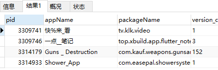 -- 匹配包含大写英文字符的数据,默认忽略大小写,需要加上"BINARY"关键字。如where appName REGEXP BINARY 'Hello'