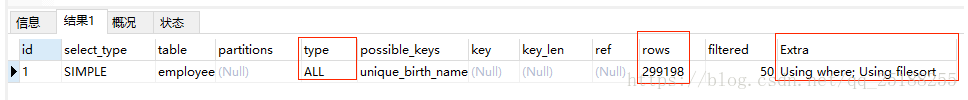第一次sql根据复合索引得到的数据量为:300024,为全表数据