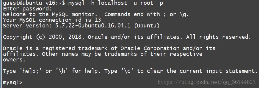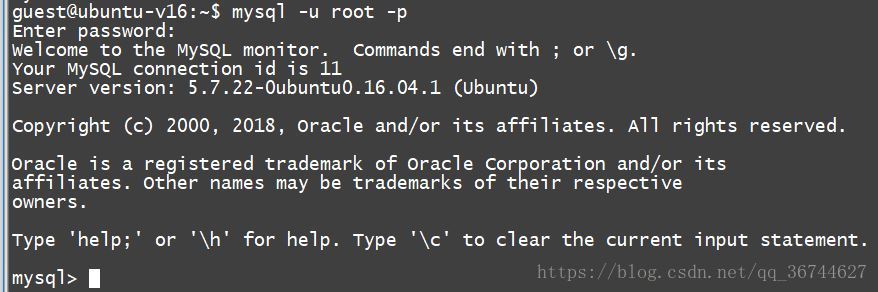 命令格式:mysql -u 用户名 -p 密码,例如: mysql -u root -p root