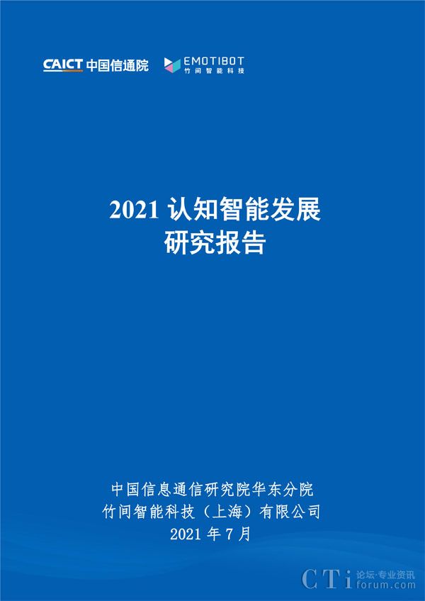 中国信息通信研究院联合竹间智能共同编制了国内首部聚焦认知智能领域的蓝皮报告《2021认知智能发展研究报告》,在7月9日上午于世博展览馆1号会议室举办的“AI智简|认知智能创科技未来”主题论坛上正式发布。