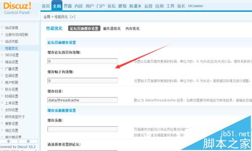 9、进入-性能优化->论坛页面缓存设置->缓存论坛首页有效期/缓存帖子有效期/缓存系数全部为0