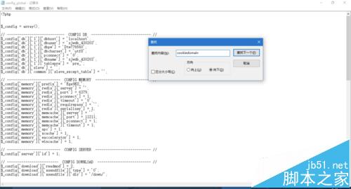 4、用记事本打开config_global.php,用CTRL+F查找“cookiedomain”关键词。