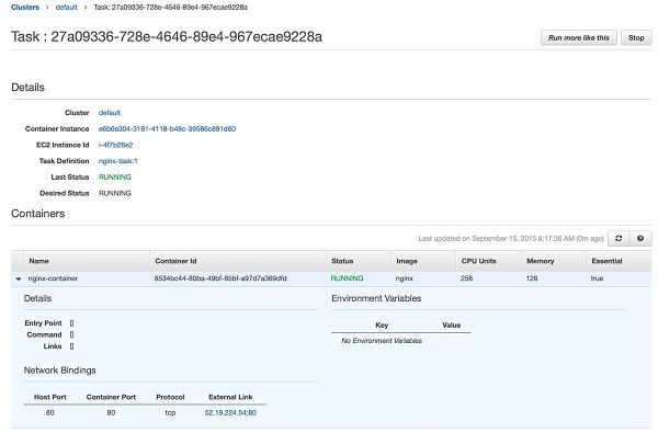 展开nginx-container。在外部链接下方,我们可以看到一个HTTP链接,指向任务内的容器。