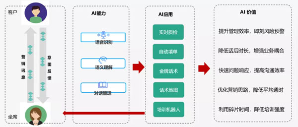 容联AI致力于推动AI底层核心能力与产品化应用的融合落地,全面参与客户的全渠道交互,以最核心的语音交互场景为例,容联AICall智能语音导航(呼入)+智能营销外呼(呼出),构建起从ASR、DM、NLU的AI能力到推荐话术、话术地图导航、自动填单、实时质检等AI应用的一体化智能解决方案,全面深度赋能企业售前、售中、售后环节,实现高效引流、精准获客、智能审核等,以更低成本获取、服务、管理更多的客户,充分挖掘用户价值。