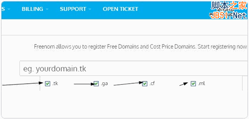 2、进入Freenom官方网站后,输入你想要注册的域名,然后选择域名后缀:.TK、.CF、.ML、.GA