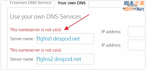1、一个问题是如果选择使用自定义DNS时(一般我们会用国内的DNSPOD),会出现NS服务器地址无效的问题。