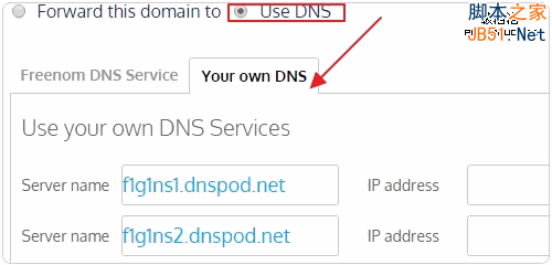 3、另一个解决的办法就是注册的过程中选择默认的Freenom域名转发,待域名注册成功后,再到Freenom后台将域名的NS服务器更换成别的。