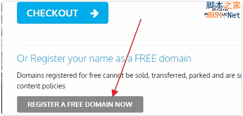 6、确定之后,最页面最下方,点击“Register A Free Domain Now”按钮,千万不要点击上面的“CheckOut”按钮,这是付费的。