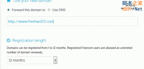3、接着跳转到域名注册页面,选择域名URL跳转、注册时长、防机器人注册码等。