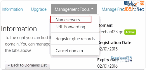 4、然后在Freenom的点击修改“Nameservers”。