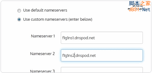 4、你也可以选择使用自定义的DNS服务器(没有选择也没有关系,你可以在域名注册成功后到域名管理后台中修改)。