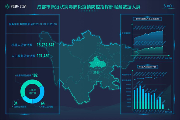 容联七陌为「天府健康码」快速训练并优化了智能Xbot机器人,来替代原有的人工服务,实现智能化自助服务。
