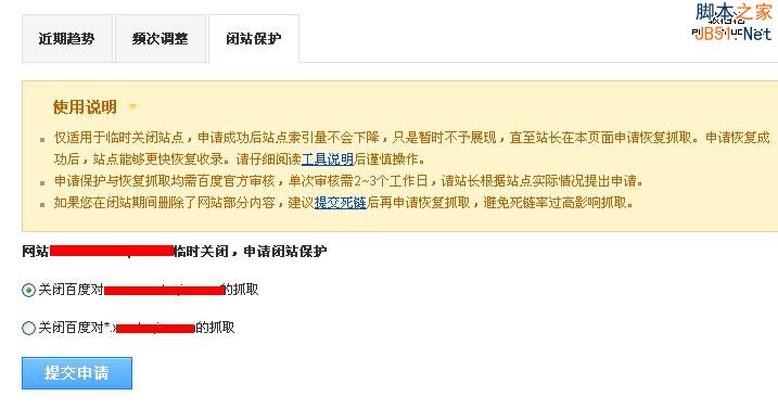 如果站点只是做些调整,或者应付一些检查,需要临时关闭几天。这种情况在以前我们毫无办法,只能狠心的关掉。现在不一样了,你可以使用百度站长平台的“闭站保护”功能,能最大程度上保证收录排名不丢失。