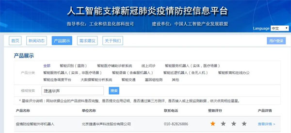 在工信部科技司指导下,中国人工智能产业发展联盟(AIIA)经过紧张研发和测试,上线“人工智能支撑新冠肺炎疫情防控信息平台”,启动抗疫人工智能产品和解决方案信息征集和推广工作,为人工智能产业界与需求方提供技术交流和供需对接便利。期间,为多地区提供服务的灵云疫情防控智能外呼机器人入选该平台。