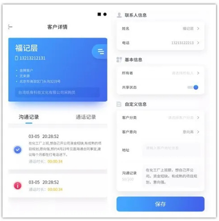 支持对本账号的历史通话进行查询,点击查看我的客户,并可对联系人信息进行修改编辑。