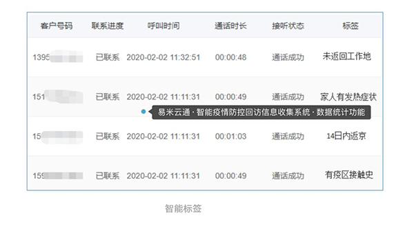 易米云通充分利用人工智能技术手段,快速响应、主动出击,其智能疫情防控回访信息收集系统采用SaaS+AI技术,可在12小时内快速云端部署到位。易米云通米话·疫情防控回访智能语音机器人每日回访数量是人工的5-8倍,且无需培训即可立即上岗,高效助力政府机构完成疫情防控回访工作。