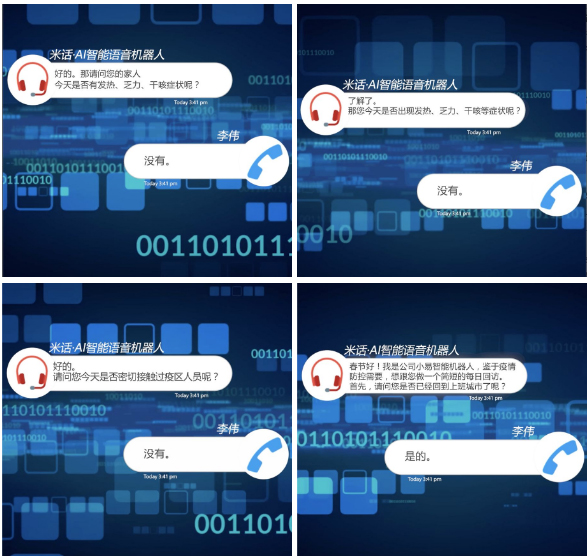 国内领先的专业AI智能语音平台服务商——易米云通,针对政府机构开展常规化、智能化疫情防控回访提出的迫切要求,紧急研发并快速上线的米话·智能疫情防控回访信息收集系统已在湖北省黄冈市、宜昌市和枝江市,上海市嘉定区和松江街道,广东省肇庆市和河源市等多地开展疫情回访、排查,信息收集和分析工作,为政府机构提供便捷、准确、高效、贴心的服务支撑。