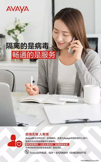 隔离病毒,保持在线。Avaya为客户提供的远程家庭坐席解决方案,避免了交叉感染,有效保证员工身体健康,也为客户服务的最终用户提供了良好的客户体验,未来,Avaya将继续根据疫情的形势为客户联络中心的运转提供有效的保障。同时坚信,在全国人民的努力下,这场疫情终将会成为过去式,Avaya也愿意与所有的合作伙伴一道为客户提供不间断的优质服务。