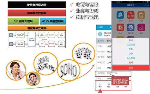 业奥MPM嵌入企业APP,集成客服或营销功能,座席可以使用手机等智能移动终端受理业务或实现呼出业务。