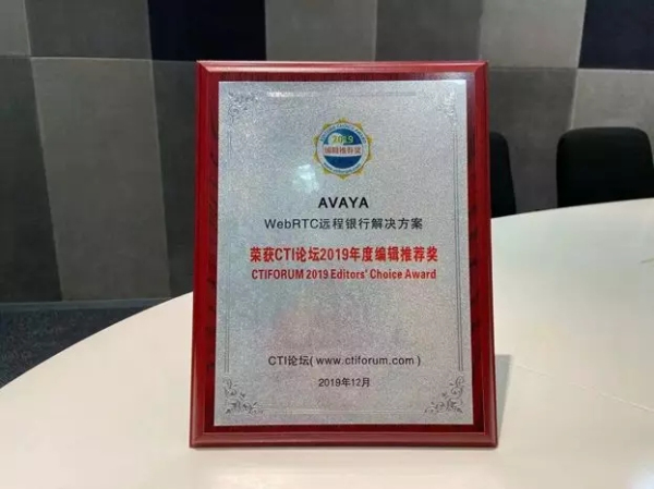 Avaya为招商银行信用卡中心打造的WebRTC远程银行解决方案,凭借领先的技术架构与优质的服务,成功斩获2019年度CTI论坛编辑推荐奖。