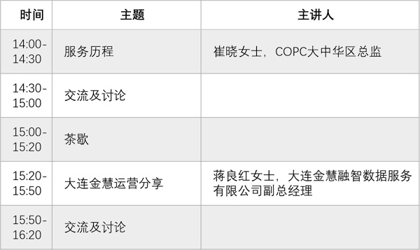 本次沙龙由COPC Inc.与大连金慧融智科技有限公司联合举办,主要探讨“服务历程”相关主题。