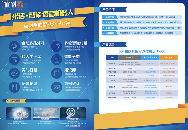 这样在大幅缩减人力成本的同时,更可智能锁定精准客户,让银行客服人员将主要精力集中在重点客户和疑难问题客户上,且整个通话过程毫无违和感,最终的销售结果会在通话结束后立即自动生成,意向客户名单也一并更新,这样的营销效果及其日成单量是过去仅靠理财经理日常手动发送理财产品推销无法企及的。在智能提醒方面,米话·智能语音机器人可独立完成客户触达并进行提醒,而且根据业务情况的不同,米话·智能语音机器人还会选择相应的通话策略,堪比“智商在线”。