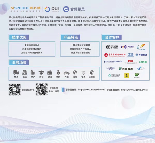 本次展会上,思必驰将向与会者重点展示智能客服解决方案:
