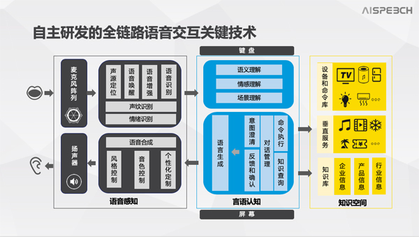 思必驰拥有完全自主产权的全系列语音及语言交互技术,从感知到认知,形成人机智能交互的完整技术链条。思必驰不仅关注语音控制,更关注人机对话式交互,多轮交互、打断纠错等技术处于国际领先水平,为产品提供专业深化的场景解决方案,为企业提供启发式对话的智能服务,同时开放DUI全链路智能对话定制平台,推进语音语言技术的应用规模化。
