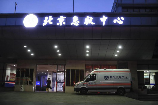 夜间,北京急救中心的大门。新京报记者浦峰摄