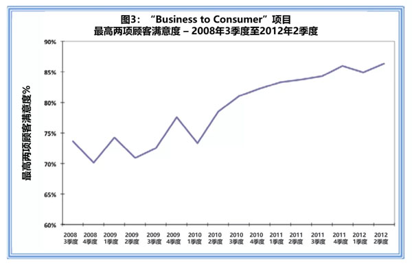如图3所示,“Business to Consumer”项目的顾客满意度提高了16个百分点。