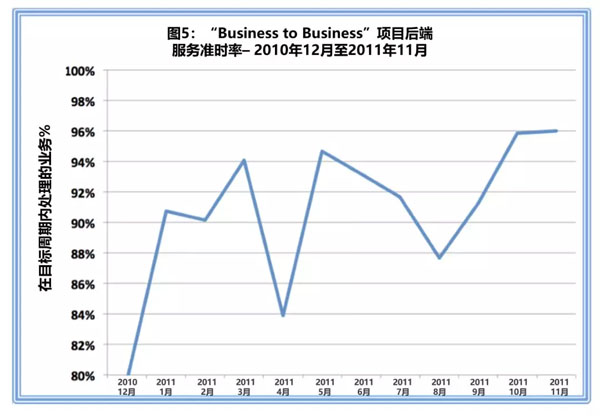 如图5所示,“Business to Business”项目的后端服务水平(即在目标时间范围内完成的业务百分比)提高了14个百分点以上。