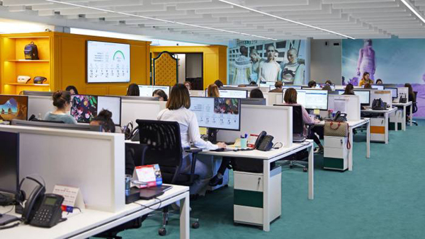 古驰最新款OphidiaGG手包与Flashtrek运动鞋就摆放在黄色细木护壁板做的货架上,而加软垫的隔档把房间分隔成很多小间,这种做法让彼此工作互不影响。在隔壁房间,身穿牛仔装、脚穿古驰运动鞋的年轻人则喝着酒吧提供的浓咖啡,看上去,这里很像高大上的科技类初创公司,但济济一堂的150名中心员工正忙着接听全球26个国家客户打来的电话,对方希望购买、退换或是就聊聊古驰——无一例外都是手机联络。