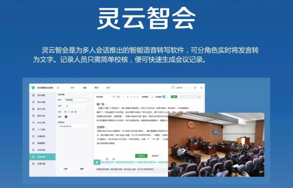 捷通华声此次展出的灵云智会、灵云智录是专门面向政法领域会议、庭审、审讯等场景推出的语音转写方案:语音识别算法业界领先,并针对政府会议、司法办案等场景做了ASR模型优化,语音识别准确率高达98%。