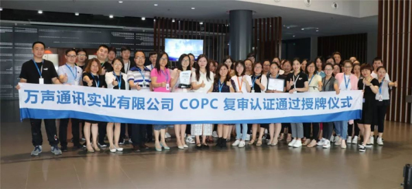 2018年1月,万声集团成功通过COPC认证,成为国内首家通过COPC顾客体验标准6.0版本认证的本土外包商。2019年1月,复审认证再次顺利通过。